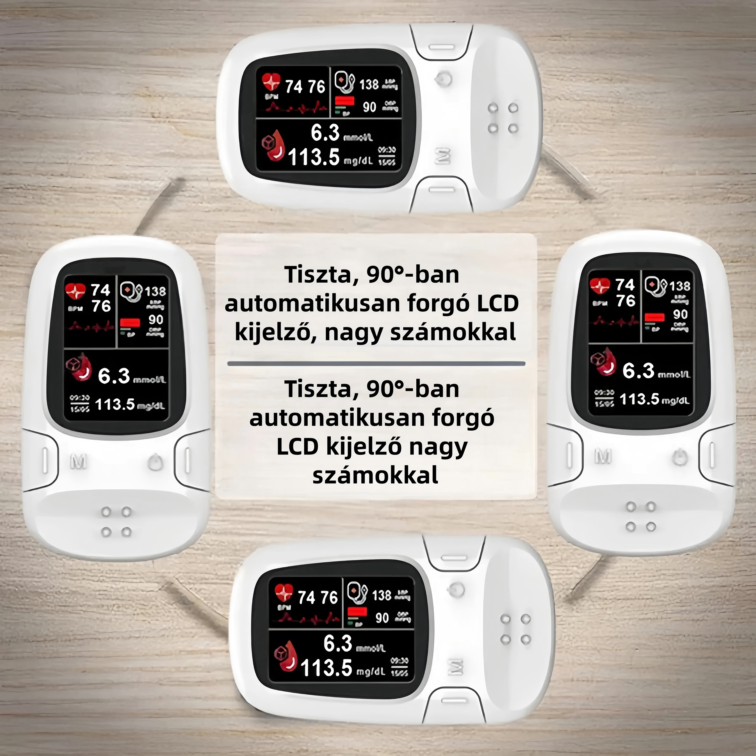 [11 az 1-ben] Okosmérő eszköz: Méri a vércukorszintet, a vérzsírokat (koleszterin, trigliceridek), a vérnyomást, a húgysavat, a pulzust, a vér oxigénszaturációját, a testhőmérsékletet, a májfunkciót, a vesefunkciót, lézerrel támogatott terápiát és a vér